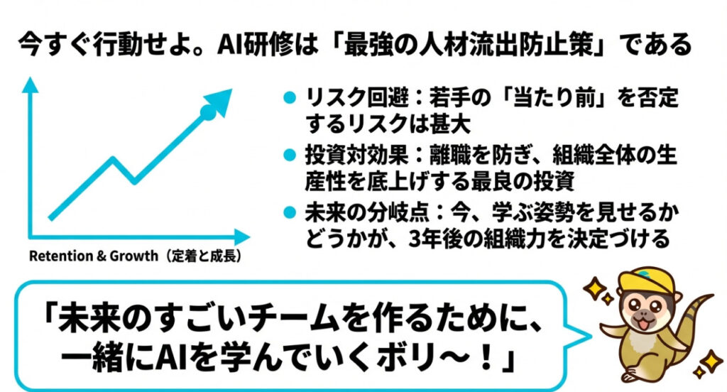 まとめ:生成AI研修は人材流出を防ぐ投資