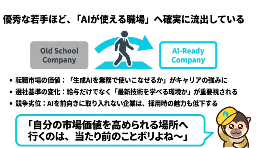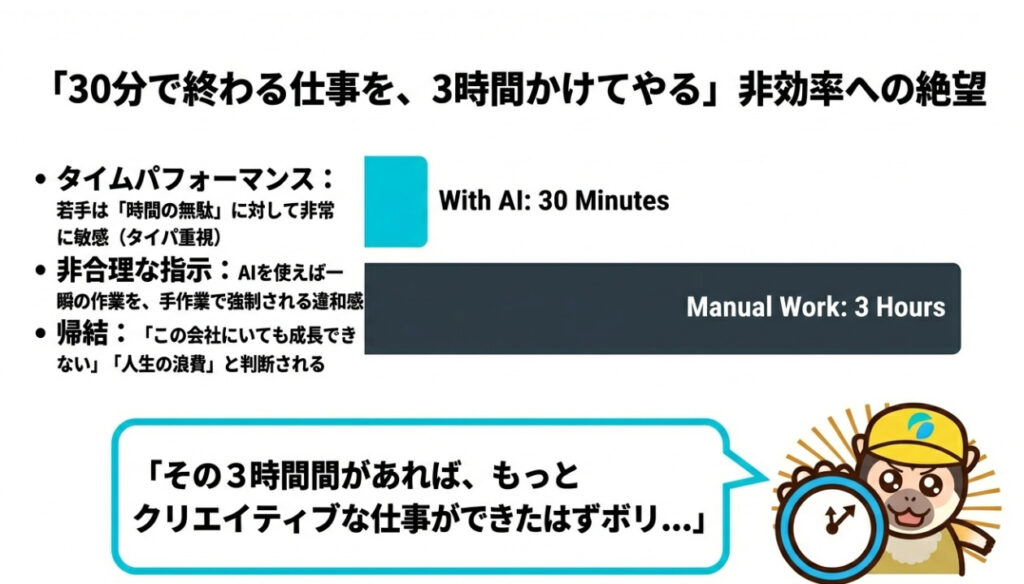 若手社員は、「AIを使わせてくれない会社に残る理由」を見つけにくくなっています。