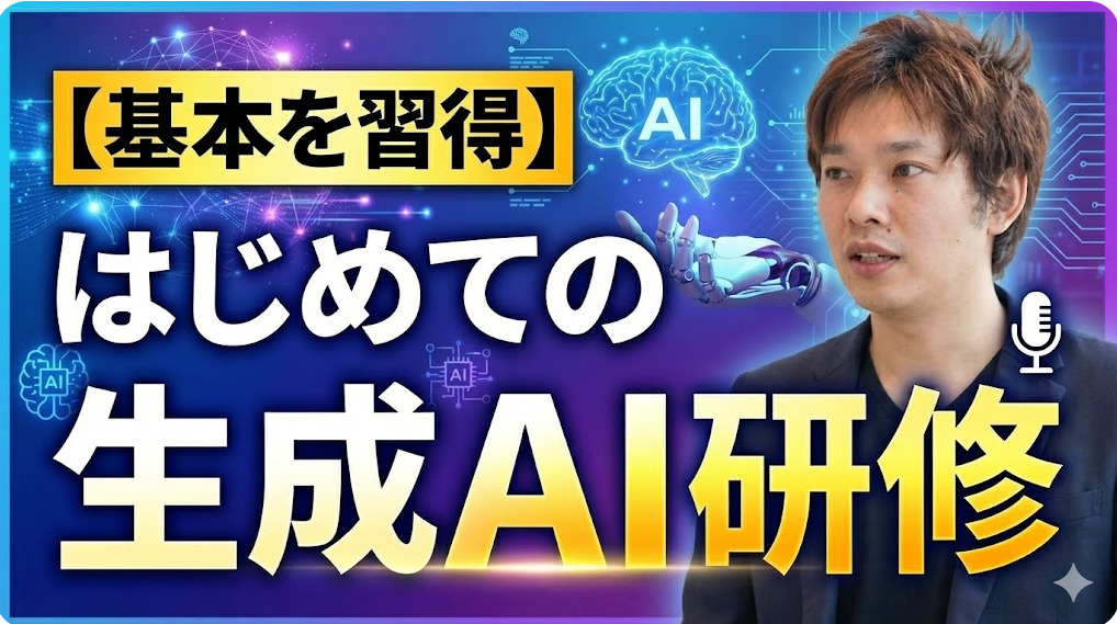 AI導入の第一歩として、生成AIの基本原理から具体的な活用法までを短時間で集中的に学ぶための講座です。