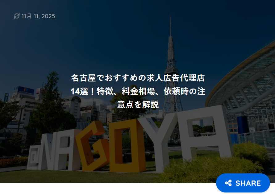 and media株式会社様の「名古屋でおすすめの求人広告代理店14選」に紹介されました