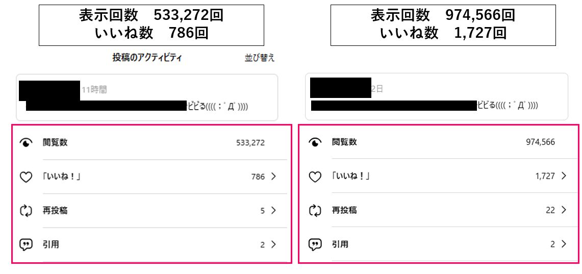 ちなみに、サブ垢のスレッズが1投稿で974,566回のインプレッションが伸びました