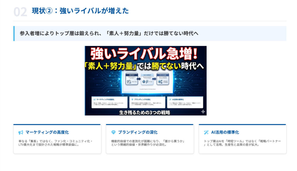 さらに、AIの普及により、パソコンやスマホが1台あれば誰でもビジネスを始められるようになり、参入障壁が劇的に下がりました。
