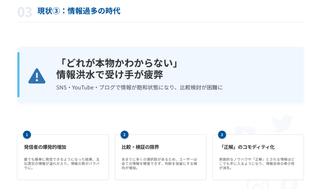 「1日1時間で稼げる」「たった2時間で数十万円」といった、短期的な欲求を刺激するような煽り文句も、顧客に見透かされています。消費者は賢くなっており、薄っぺらい信頼関係では財布の紐を緩めません。
