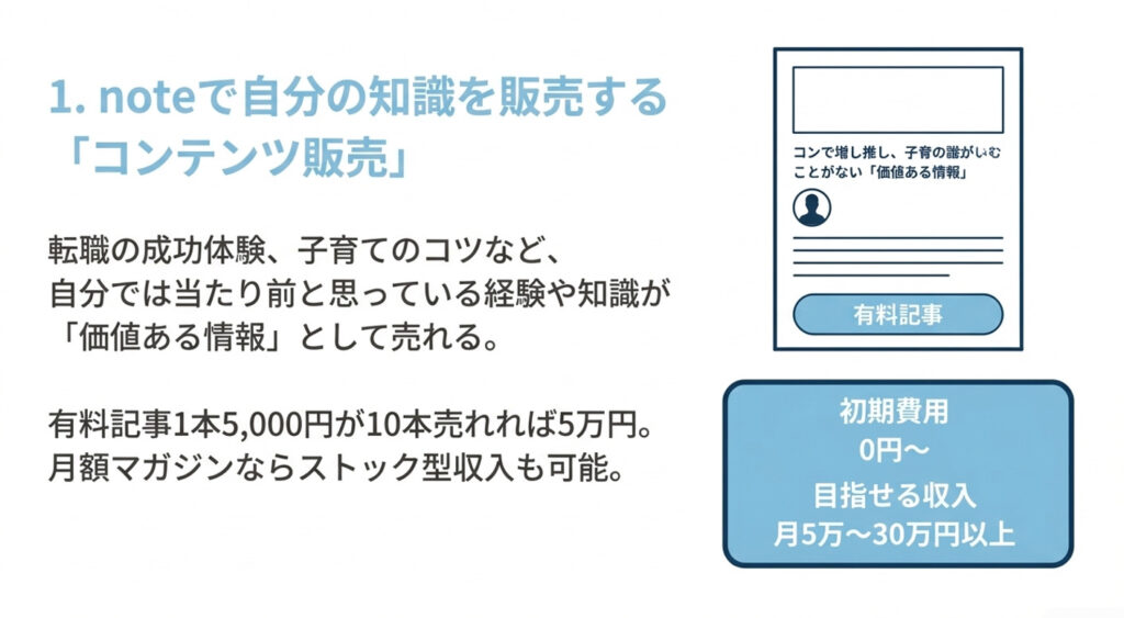【アイデア1】「知識」を収益化するコンテンツ販売(note/有料記事)
