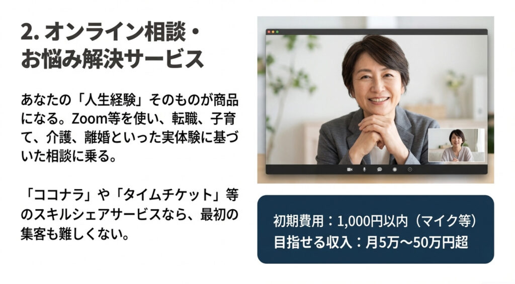 【アイデア2】あなたの「人生経験」が商品になるオンライン相談サービス
