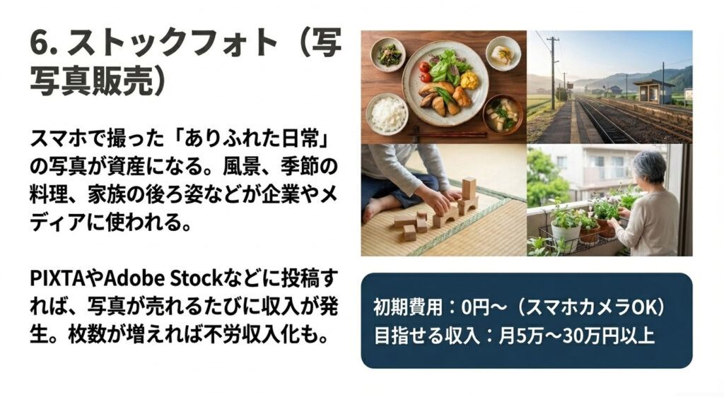 【アイデア6】日常の風景がお金に変わるストックフォト販売