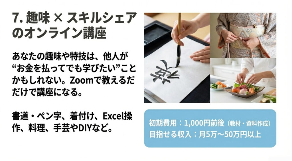 【アイデア7】特技を教える!趣味・スキルシェアのオンライン講座