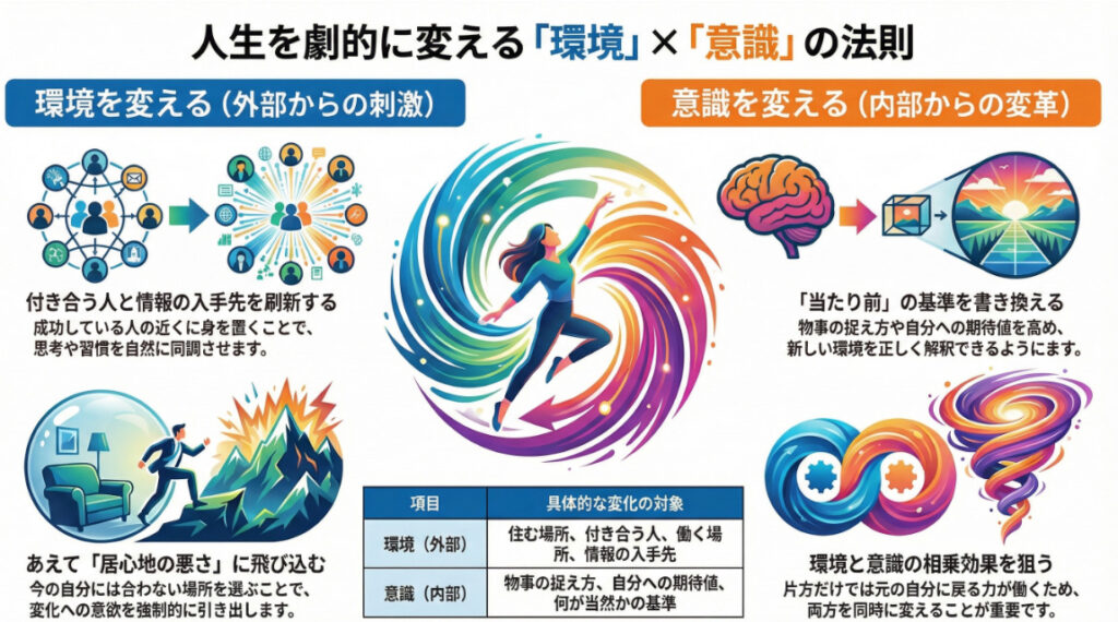 だからこそ、本当に人生を変えたいなら「環境」と「意識」の両方を変える必要があります。
