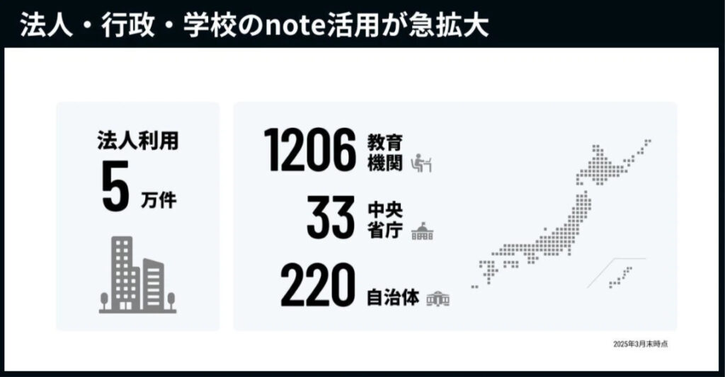 既にnoteは多くの企業、教育機関、中央省庁、自治体が利用してきています。