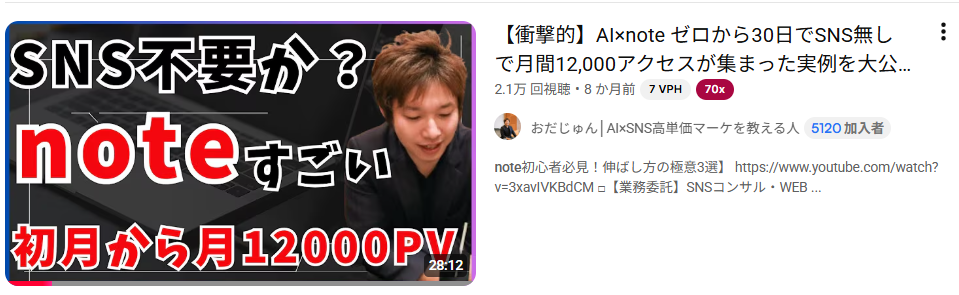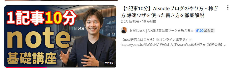 ちなみに、小田じゅんはnote関係の発信をYouTubeで発信しておりますが、1つの動画で2万再生以上されている動画も作成しております。