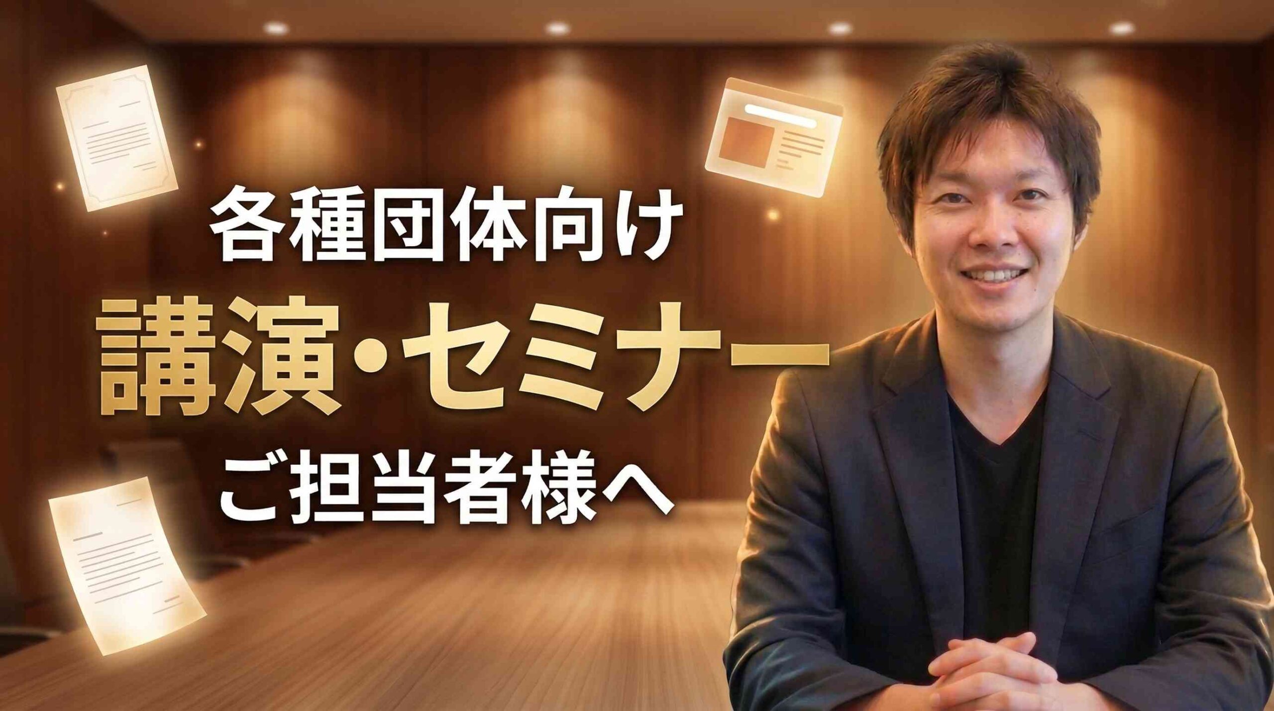 経営者向け講演、団体向けセミナー、会員向け勉強会、イベント登壇をご検討中の企業・団体様は、お気軽にご相談ください。