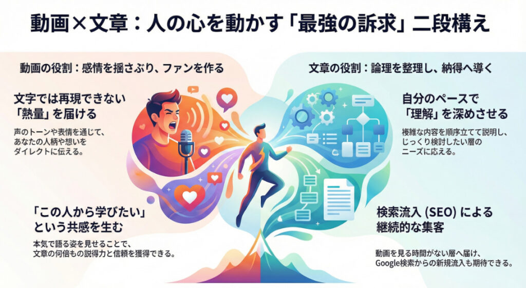 動画と文章、両方で全力を出し切る覚悟が、あなたのビジネスを次のステージへ引き上げます。
